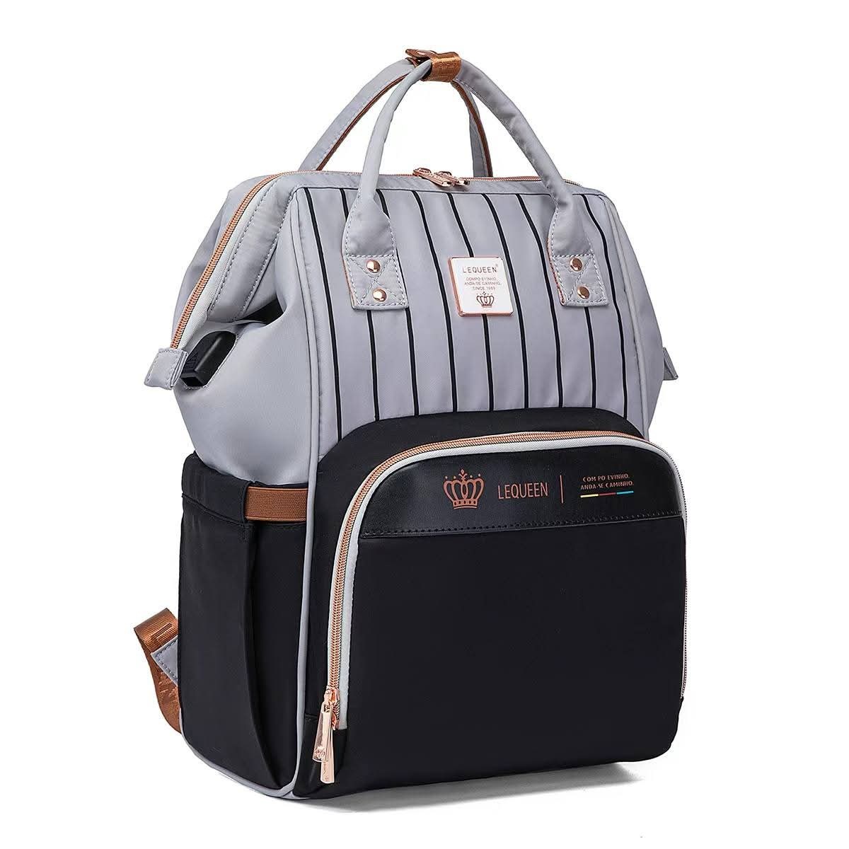 شنطه ليكوين الجيل الثامن كلاسيك Lequeen 8TH Gold Classic Original Mommy Bag Gray-Black